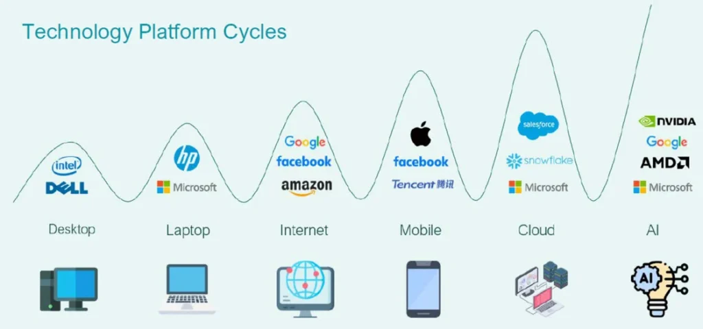 There are several key lessons we can learn from past technology platform shifts. The new market leaders create significant enterprise value: Many of the largest companies today were the market leaders in past platform shifts. Having exposure today to the companies that will become the generative AI winners should have profound implications on investment performance over the coming years.